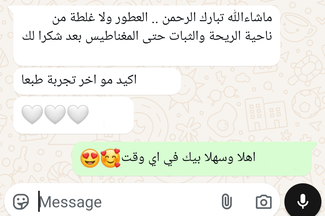 نحن نوفر سياسة استرجاع مدتها 7 أيام من تاريخ الاستلام، ويمكن للعميل إرجاع العطر فقط في حال وجود مشكلة في المنتج، بشرط أن تتم إعادته بنفس حالته الأصلية تماماً مع الحفاظ على علبته سليمة. بعد التحقق من حالة العطر، يتم استبداله أو استرجاع المبلغ حسب رغبتك.